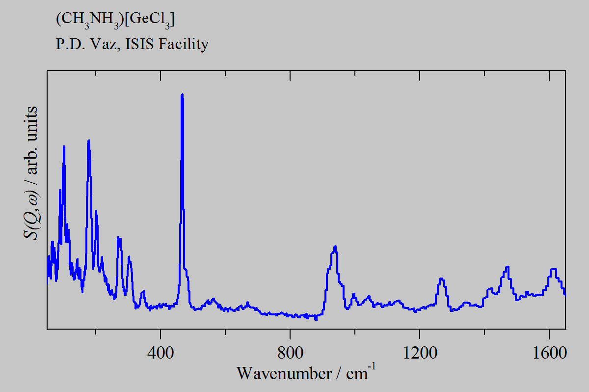 Inelastic Neutron Scattering spectrum of Methylammonium germanium trichloride, (CH3NH3)[GeCl3], measured on the TOSCA instrument.