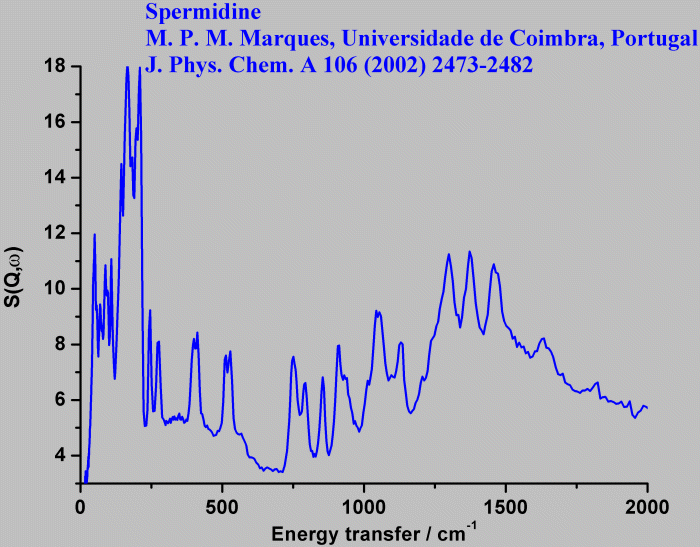 Inelastic Neutron Scattering spectrum of Spermidine, H₂N(CH₂)₃NH(CH₂)₃NH₂, measured on the TOSCA instrument.