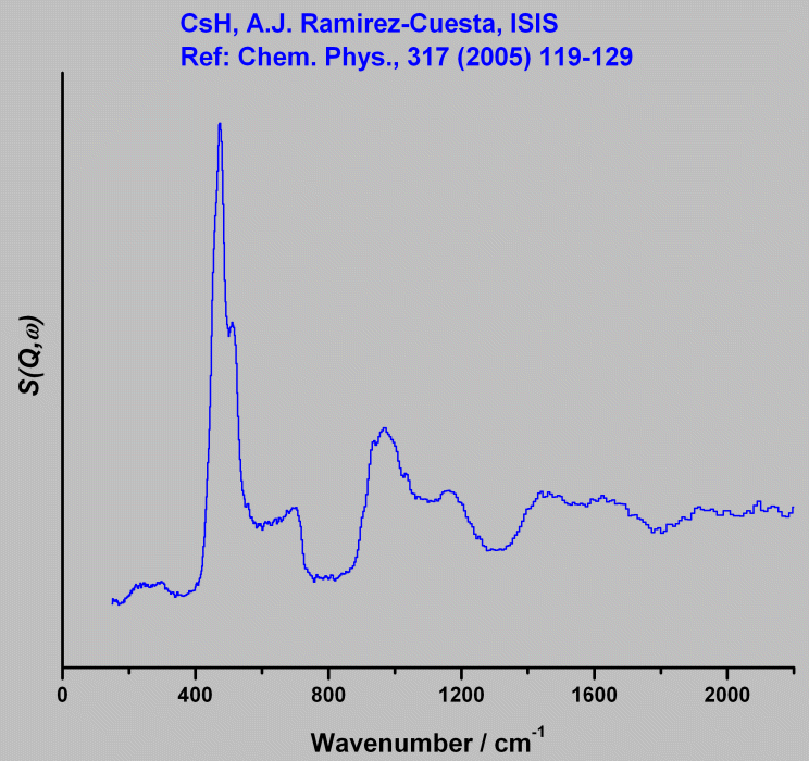 Inelastic Neutron Scattering spectrum of Caesium hydride, CsH, measured on the TOSCA instrument.