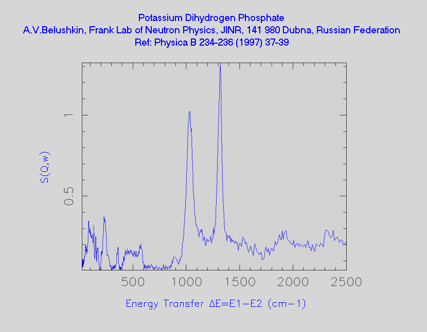 Inelastic Neutron Scattering spectrum of Potassium dihydrogen phosphate, KH₂PO₄, measured on the TFXA instrument.