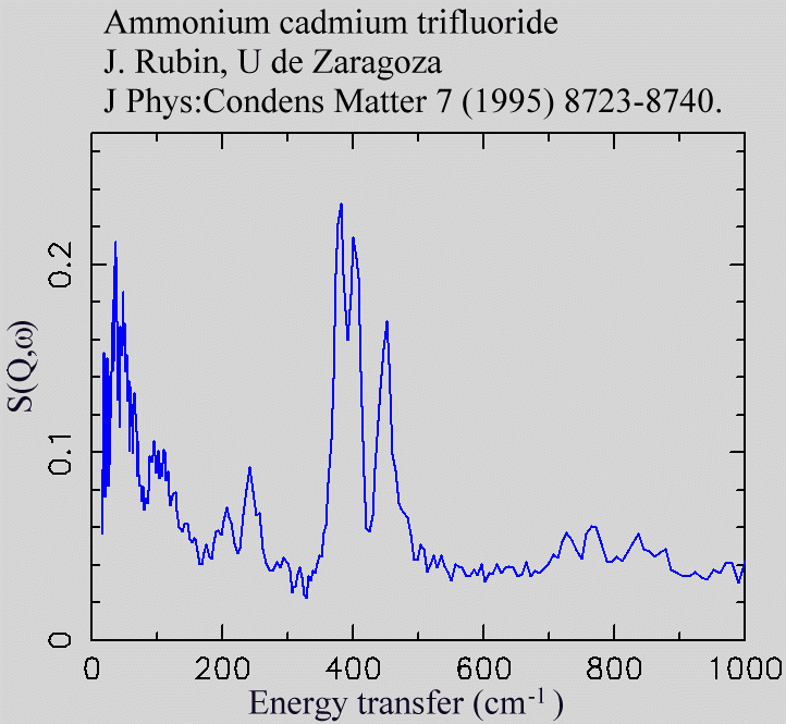 Inelastic Neutron Scattering spectrum of Ammonium cadmium trifluoride, NH₄CdF₃, measured on the TFXA instrument.