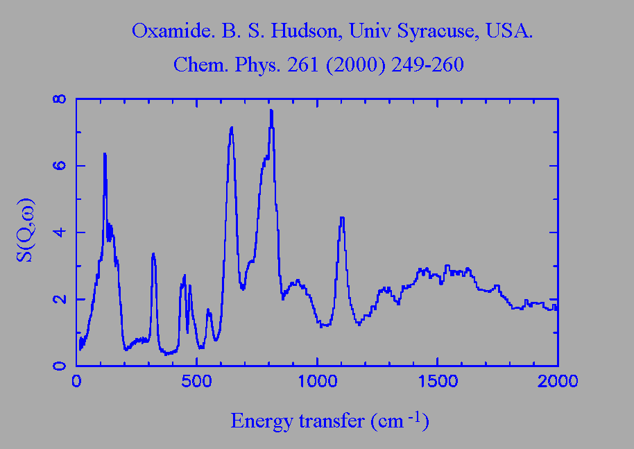 Inelastic Neutron Scattering spectrum of Oxamide, C₂H₄N₂O₂, measured on the TOSCA-1 instrument.