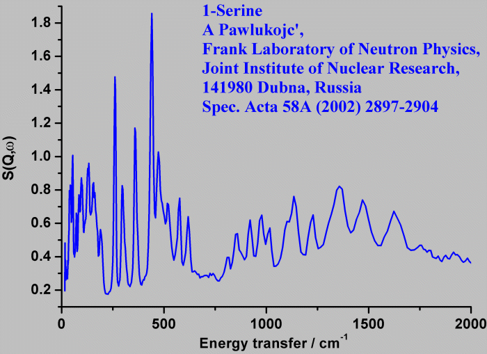 Inelastic Neutron Scattering spectrum of 1-Serine, HOCH₂CH(NH₂)CO₂H, measured on the TOSCA instrument.