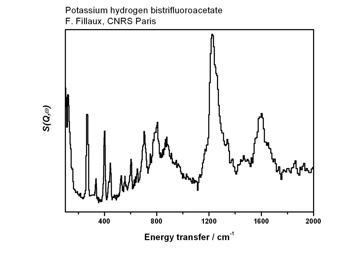 Inelastic Neutron Scattering spectrum of Potassium hydrogen bistrifluoroacetate, KH(CF₃CO₂)₂, measured on the TFXA instrument.