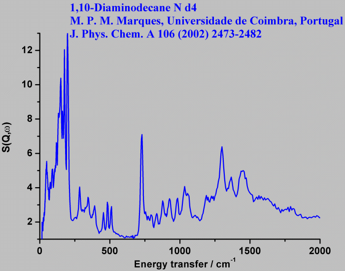 Inelastic Neutron Scattering spectrum of 1,10-Diaminodecane N-D4, D₂N-(CH₂)n-ND₂ n=Decane, measured on the TOSCA instrument.