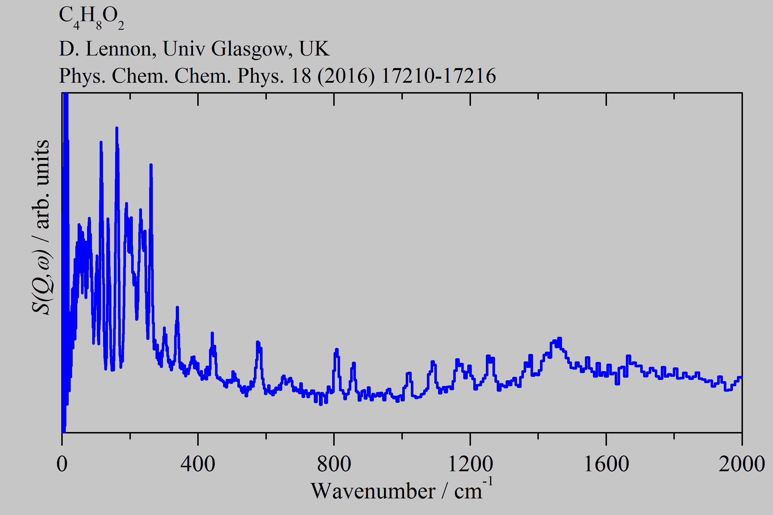 Inelastic Neutron Scattering spectrum of Methyl propanoate, C₄H₈O₂, measured on the TOSCA instrument. CH₃CH₂COOCH₃.