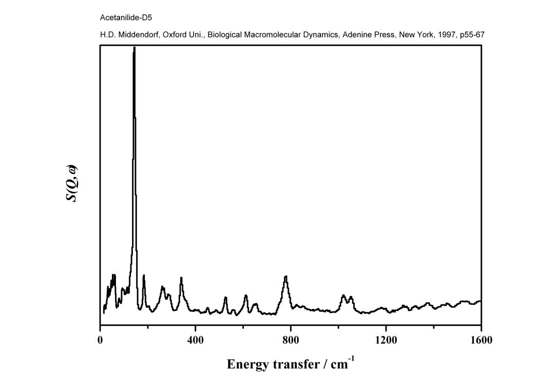 Inelastic Neutron Scattering spectrum of Acetanilide-D5, C₆D₅NHCOCH₃, measured on the TFXA instrument.