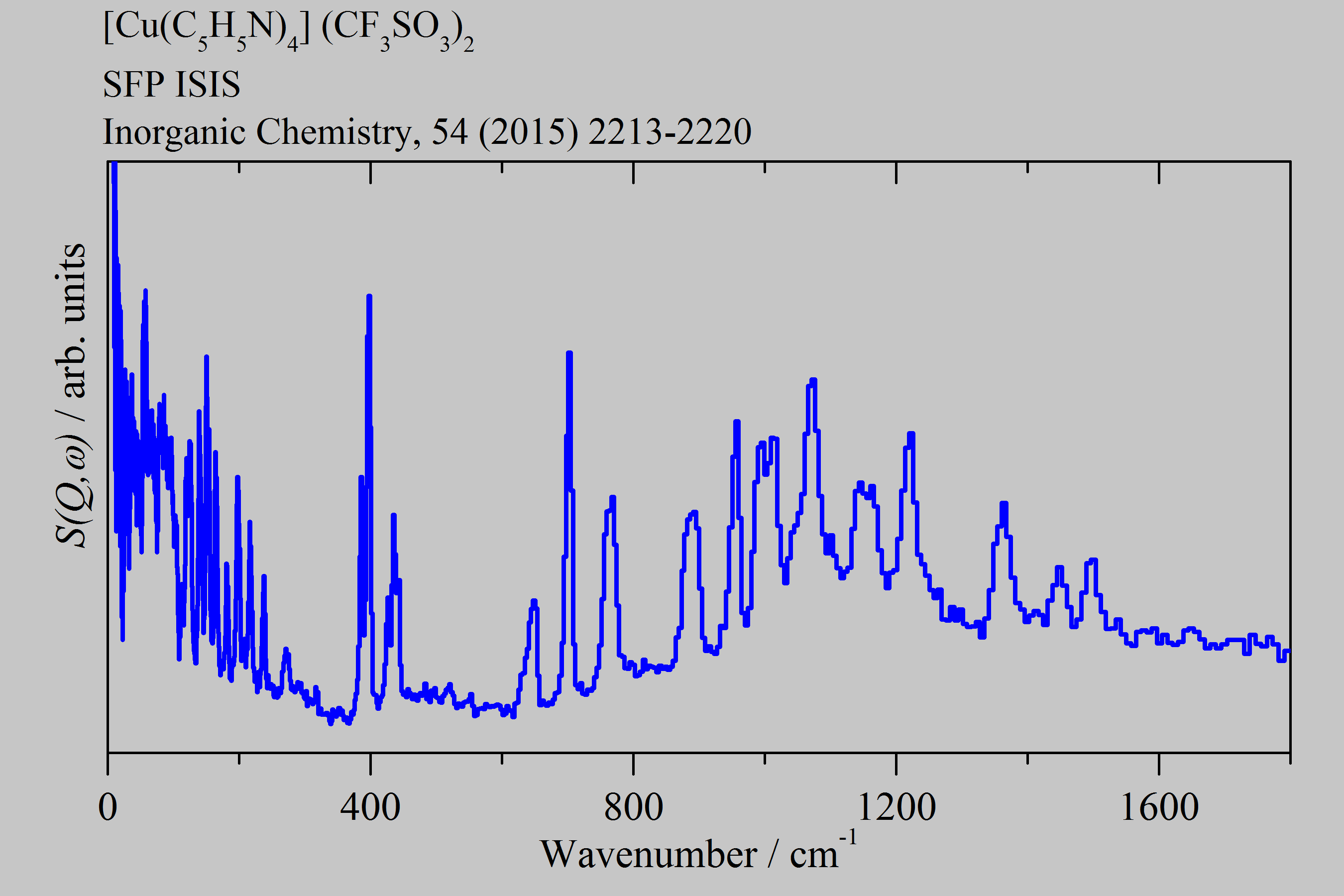 Inelastic Neutron Scattering spectrum of Tetrakispyridine copper (II) triflate, [Cu(C₅H₅N)₄] (CF₃SO₃)₂, measured on the TOSCA instrument.