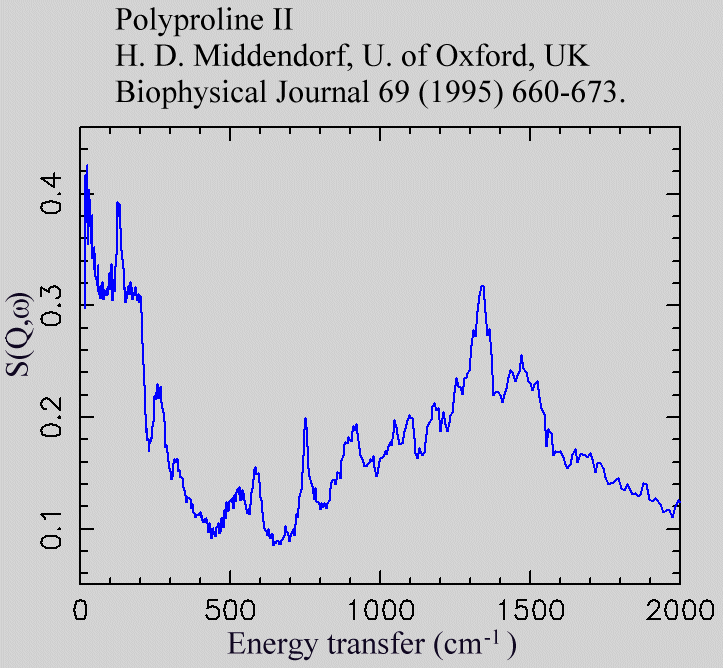 Inelastic Neutron Scattering spectrum of Polyproline (II), , measured on the TFXA instrument.