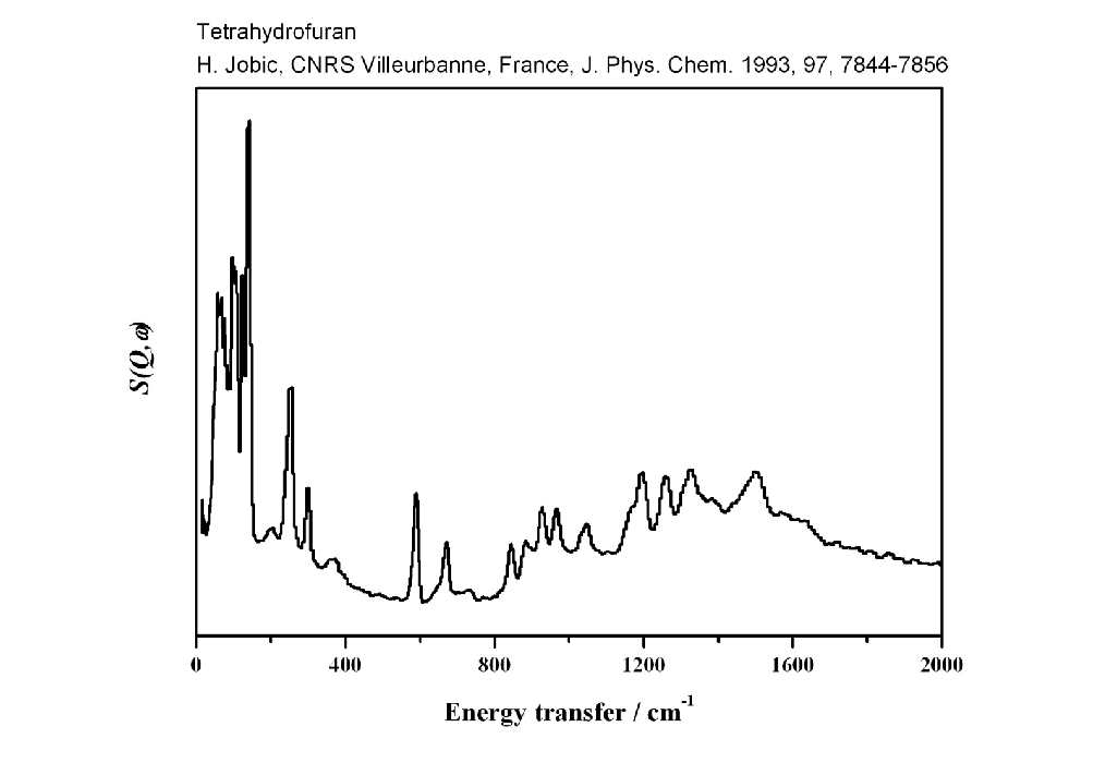 Inelastic Neutron Scattering spectrum of Tetrahydrofuran, C₄H₈O, measured on the TFXA instrument.