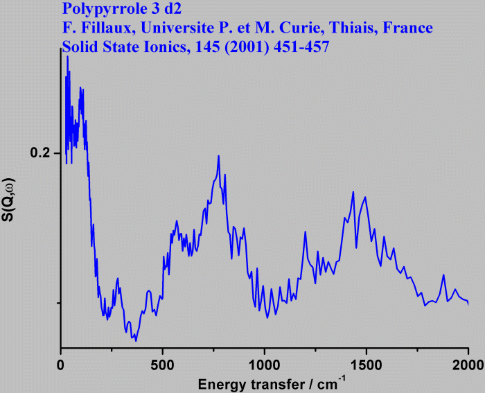Inelastic Neutron Scattering spectrum of Polypyrrole (III) D2, (C4H2DN)nCl0.33, measured on the TOSCA instrument.