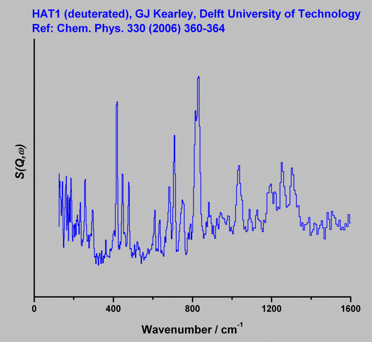 Inelastic Neutron Scattering spectrum of HAT1D, C₂₄H₆D₁₈O₆, measured on the TOSCA instrument.