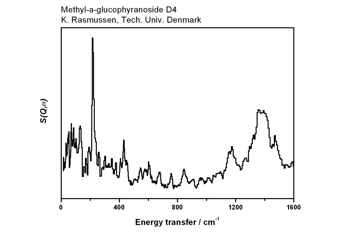 Inelastic Neutron Scattering spectrum of Methyl-a-glucopyranoside-D4, , measured on the TFXA instrument.