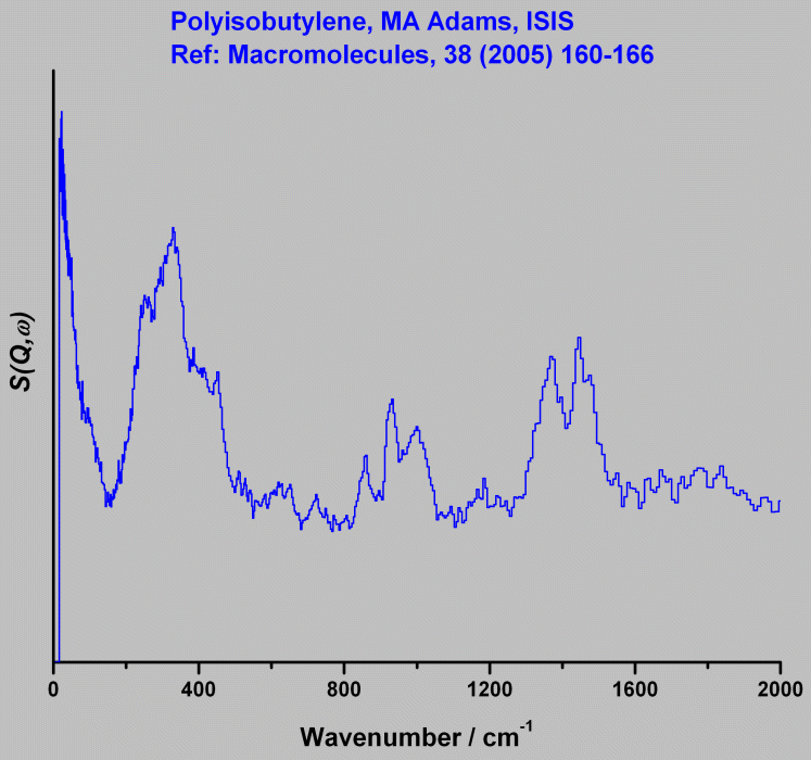 Inelastic Neutron Scattering spectrum of Polyisobutylene, [C₄H₈]n, measured on the TFXA instrument.