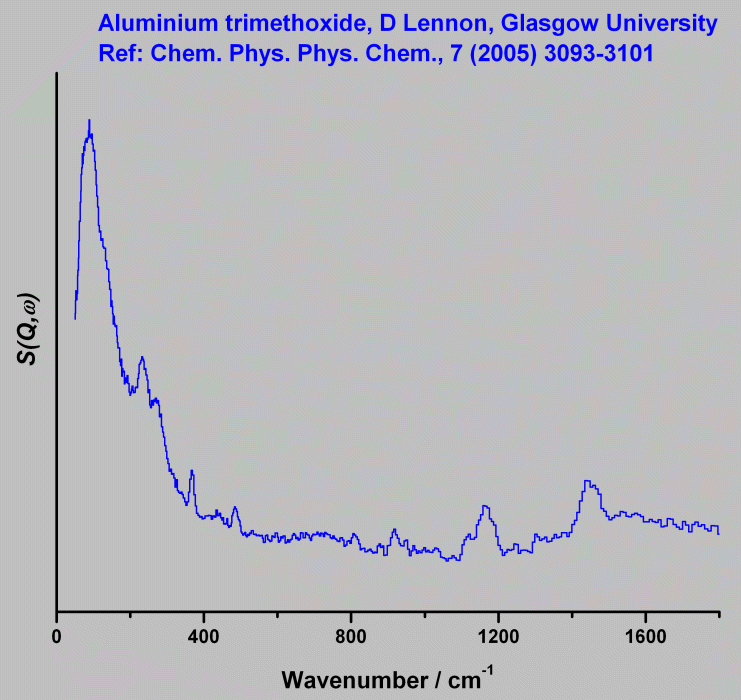 Inelastic Neutron Scattering spectrum of Aluminium trimethoxide, Al(OCH₃)₃, measured on the TOSCA instrument.