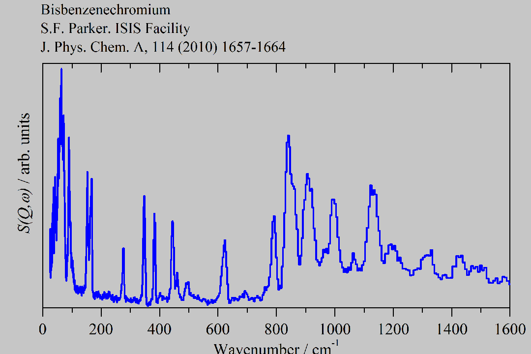 Inelastic Neutron Scattering spectrum of Bisbenzenechromium, Cr(C₆H₆)₂, measured on the TOSCA instrument.