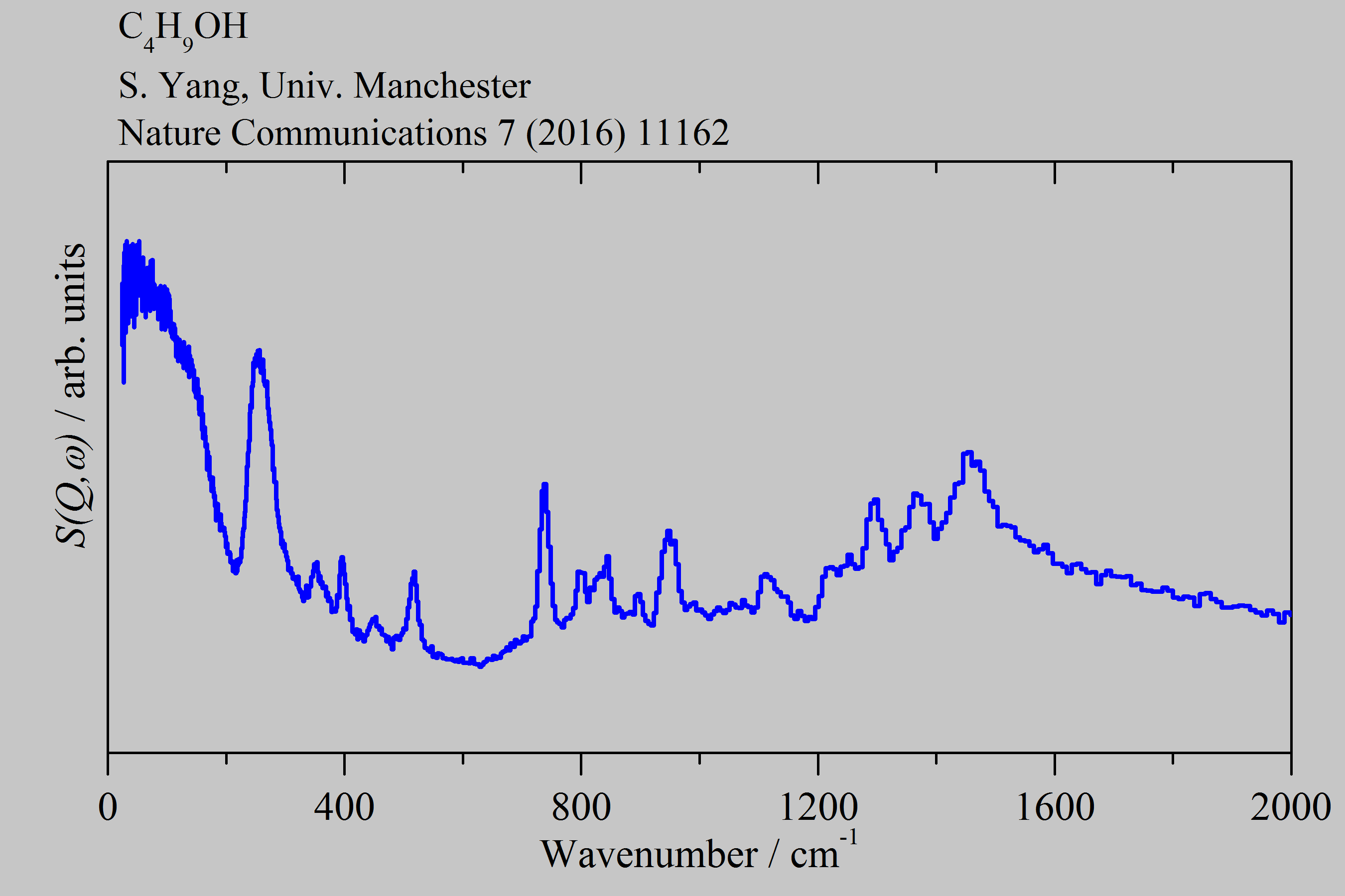 Inelastic Neutron Scattering spectrum of 1-Butanol amorphous, C4H9OH, measured on the TOSCA instrument.