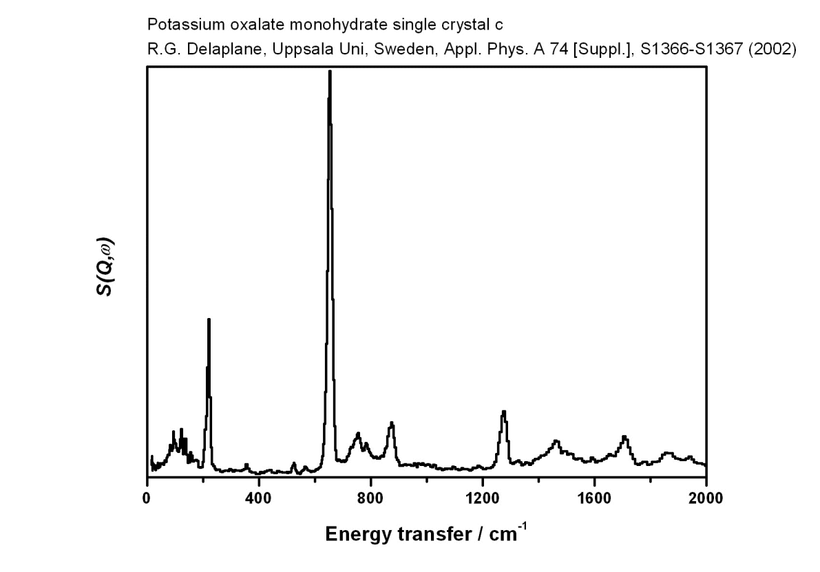 Inelastic Neutron Scattering spectrum of Potassium oxalate monohydrate single crystal c, K2C2O4.H2O, measured on the TFXA instrument. parallel to the H-H vector in H2O.