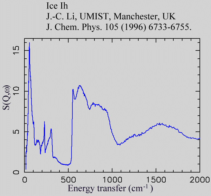 Inelastic Neutron Scattering spectrum of Ice Ih, H₂O, measured on the TOSCA-1 instrument.