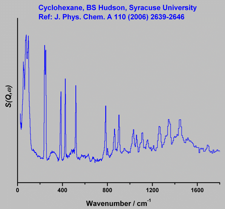 Inelastic Neutron Scattering spectrum of Cyclohexane, C₆H₁₂, measured on the TOSCA instrument.