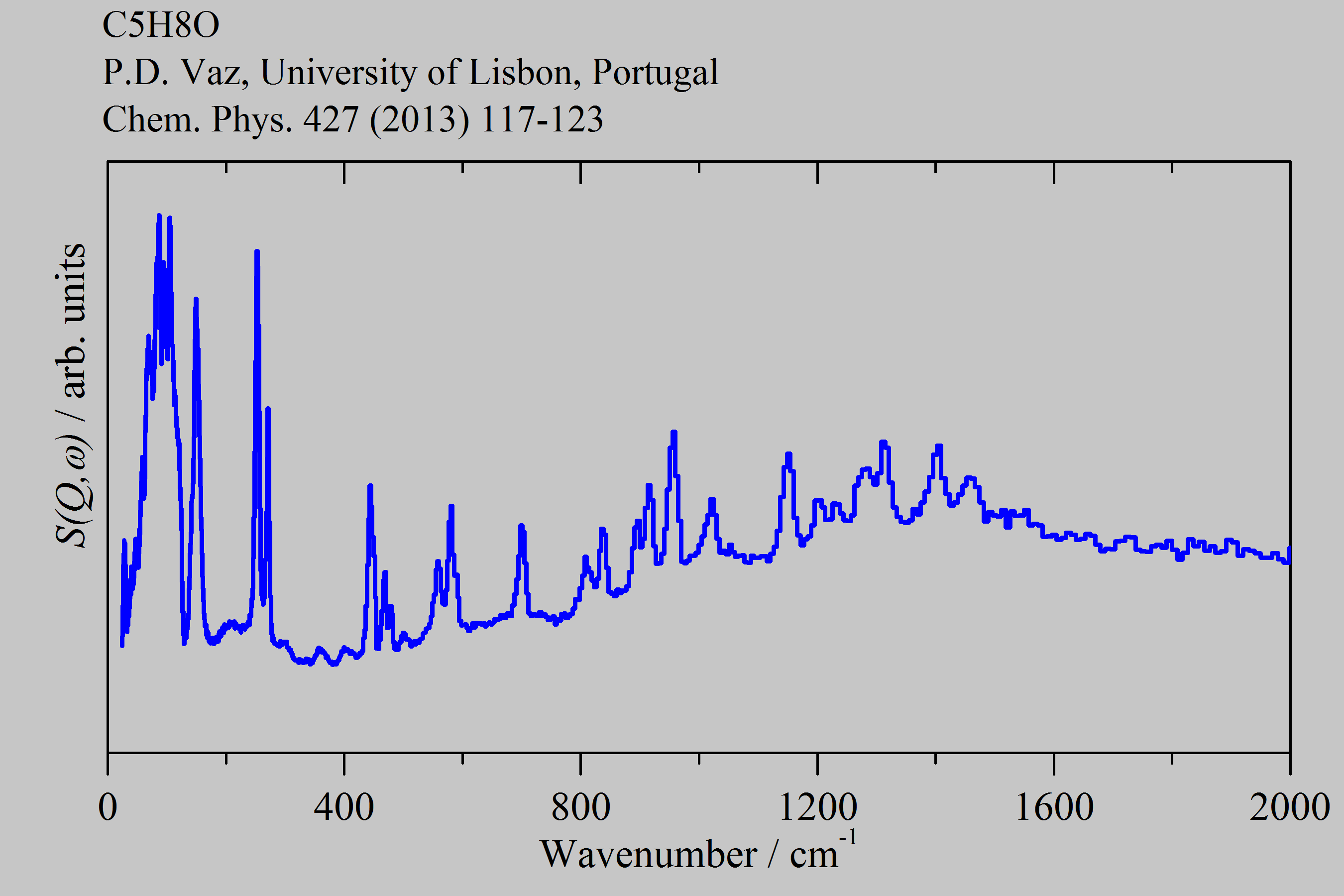 Inelastic Neutron Scattering spectrum of Cyclopentanone, C₅H₈O, measured on the TOSCA instrument.