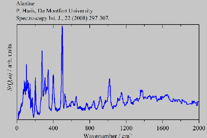 Inelastic Neutron Scattering spectrum of Alanine, C₃H₇NO₂, measured on the TOSCA-1 instrument.