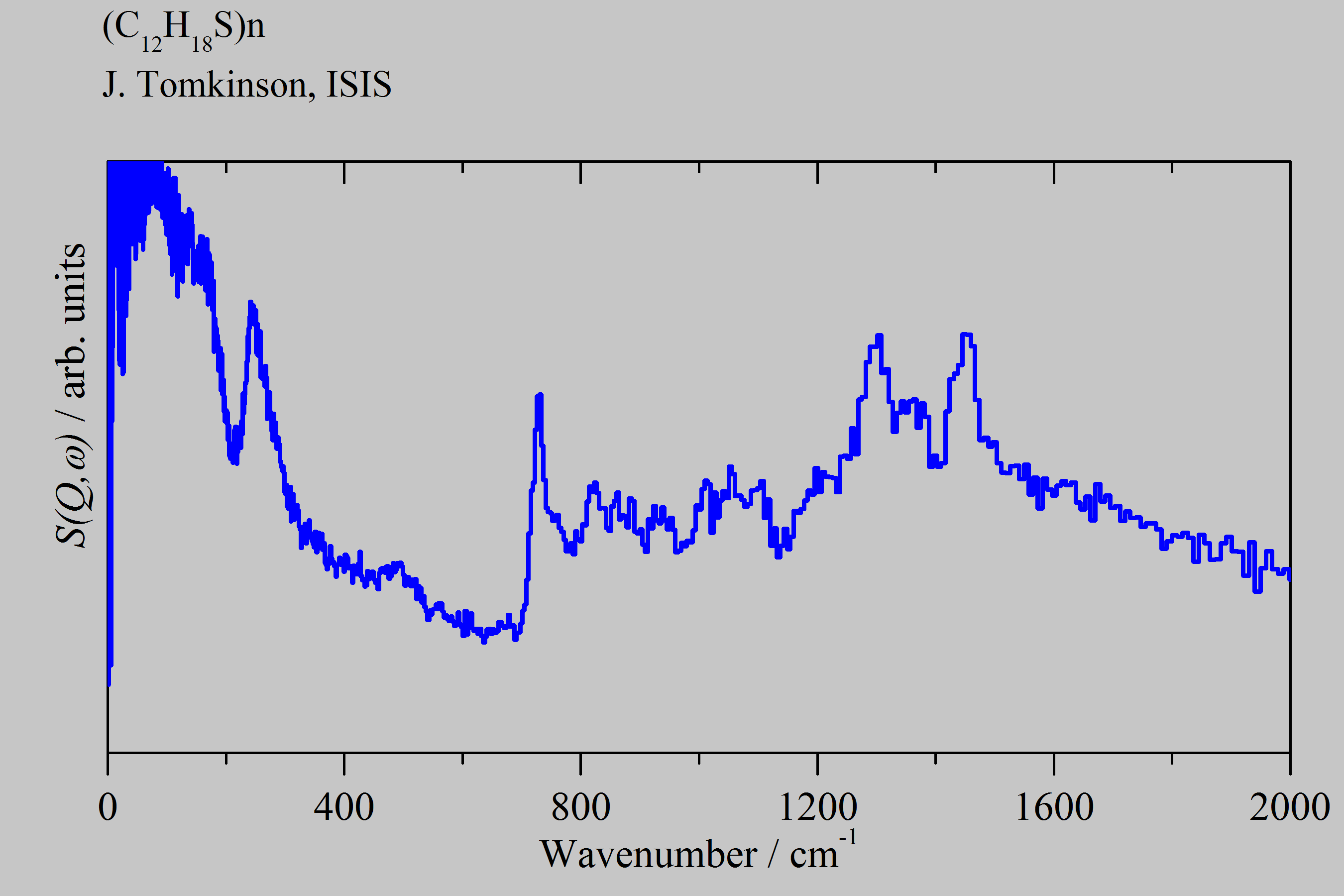 Inelastic Neutron Scattering spectrum of Poly(3-octylthiophene-2,5-diyl), (C₁₂H₁₈S)n, measured on the TOSCA instrument. P3OT.