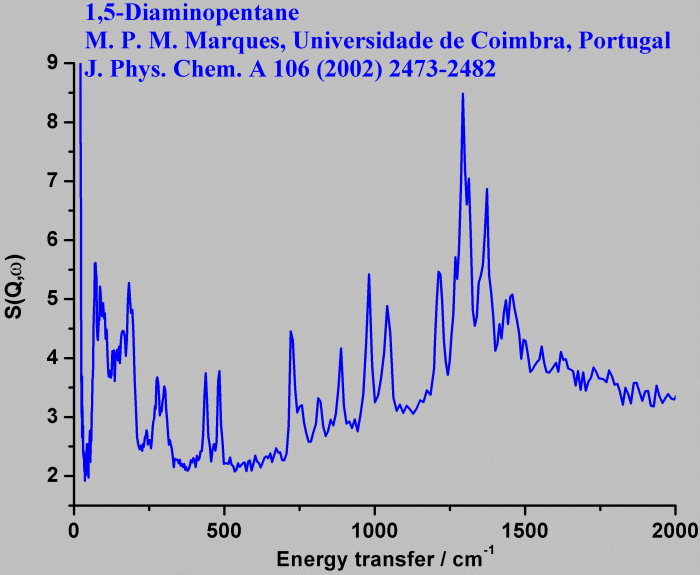 Inelastic Neutron Scattering spectrum of 1,5-Diaminopentane, H₂n-(CH₂)n-NH₂ n=pentane, measured on the TOSCA instrument.