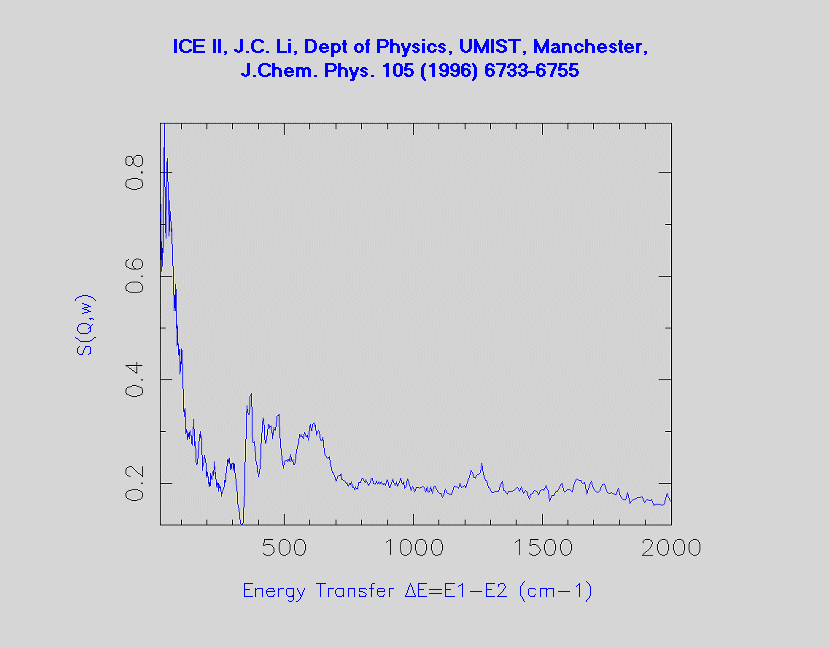 Inelastic Neutron Scattering spectrum of Ice II, H₂O, measured on the TFXA instrument.