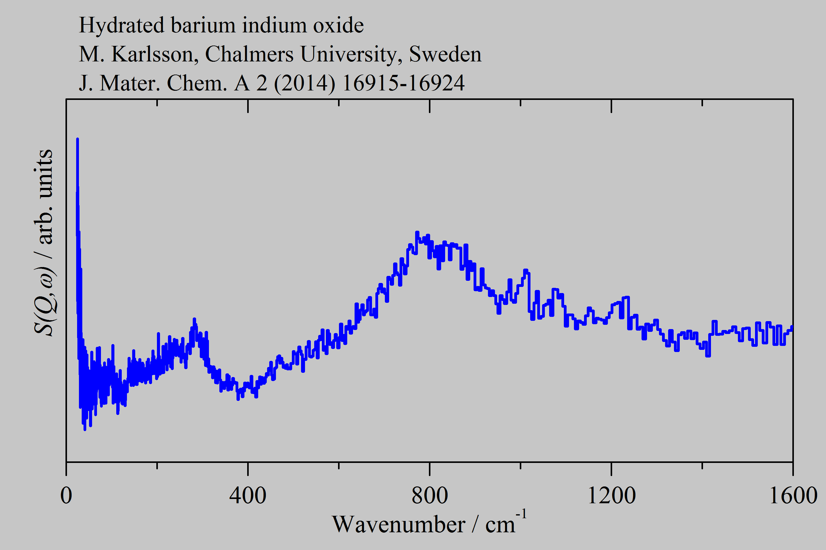 Inelastic Neutron Scattering spectrum of Hydrated barium indium oxide, BaInO3H, measured on the TOSCA instrument.