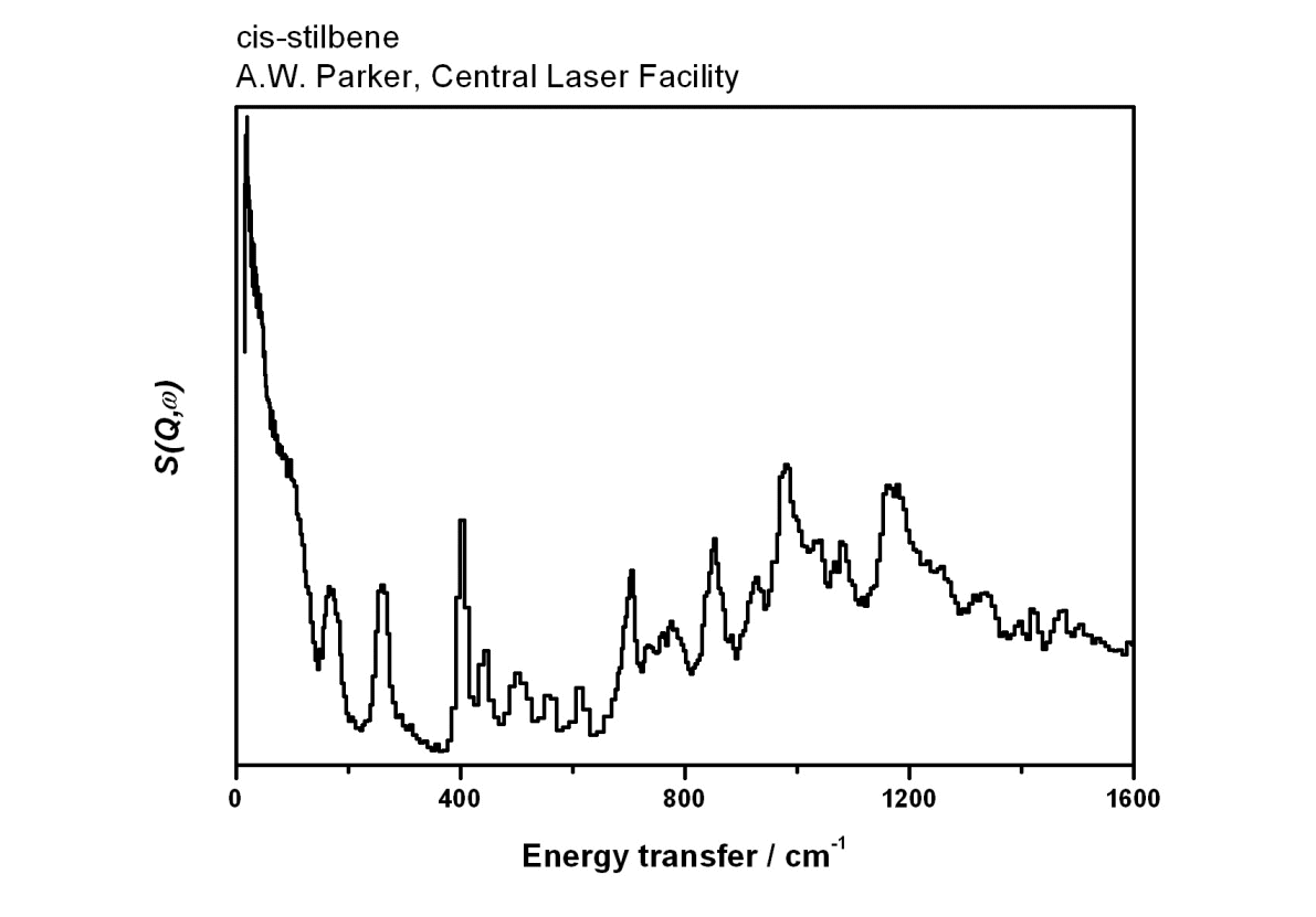 Inelastic Neutron Scattering spectrum of cis Stilbene, C₆H₅CH=CHC₆H₅, measured on the TFXA instrument.