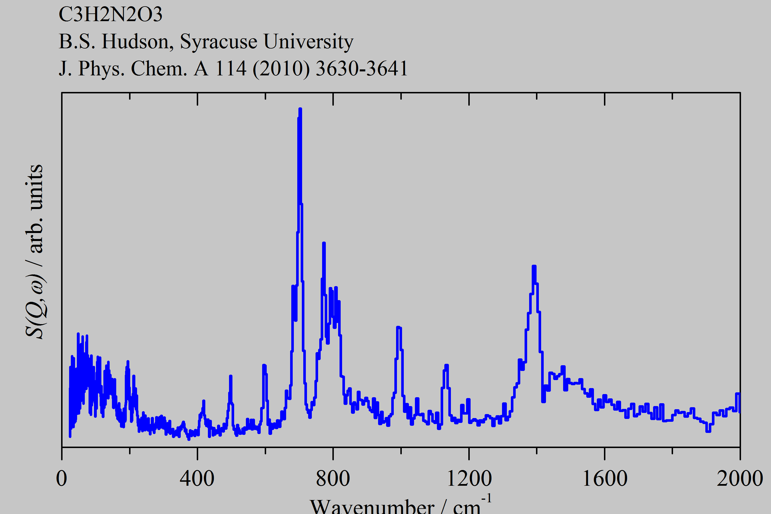 | dc.description.abstract | Inelastic Neutron Scattering spectrum of Parabanic acid, C₃H₂N₂O₃, measured on the TOSCA instrument. | |
