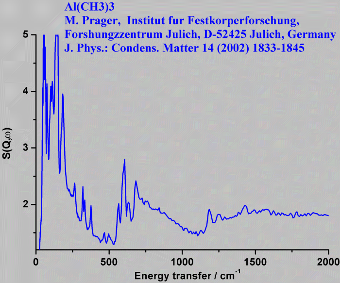 Inelastic Neutron Scattering spectrum of Trimethylaluminium, Al(CH₃)₃, measured on the TOSCA instrument.