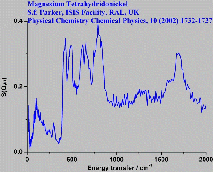 Inelastic Neutron Scattering spectrum of Magnesium tetrahydridonickel, Mg₂NiH₄, measured on the TFXA instrument.