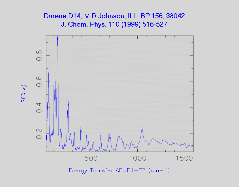Inelastic Neutron Scattering spectrum of Durene-D14, C₁₀ D₁₄, measured on the TFXA instrument.