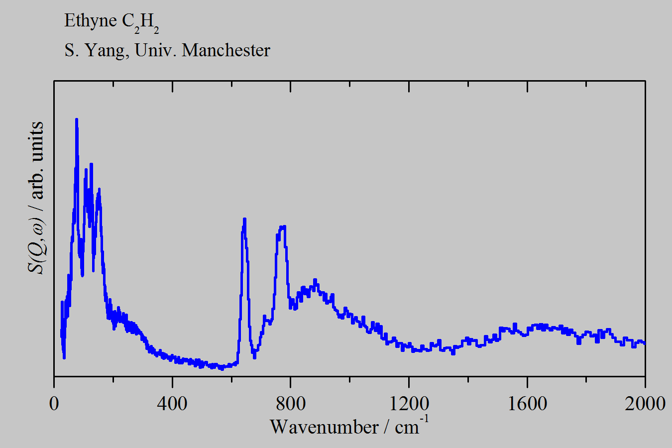 Inelastic Neutron Scattering spectrum of Ethyne, C2H2, measured on the TOSCA instrument.