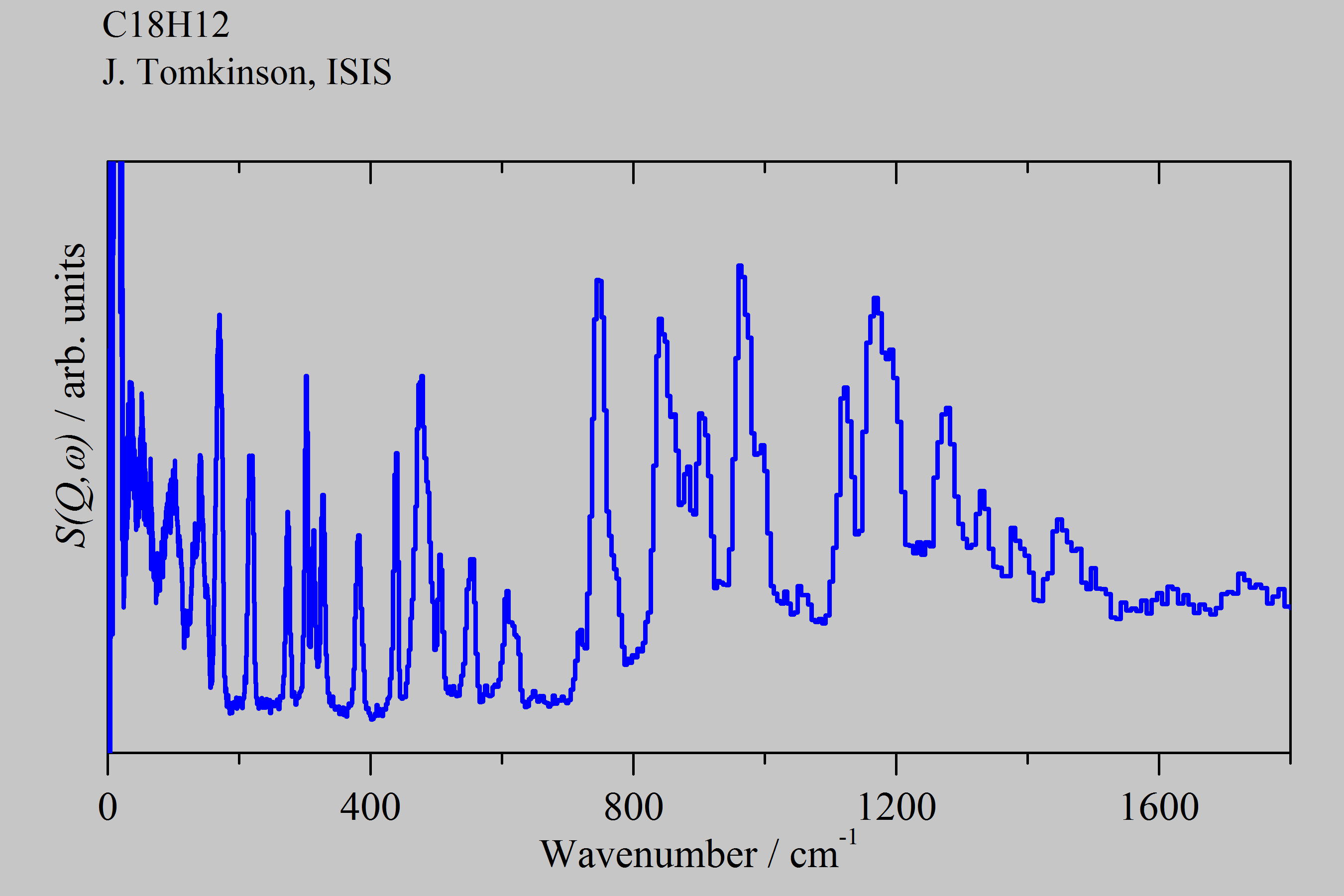 Inelastic Neutron Scattering spectrum of Tetracene, C₁₈H₁₂, measured on the TOSCA instrument.