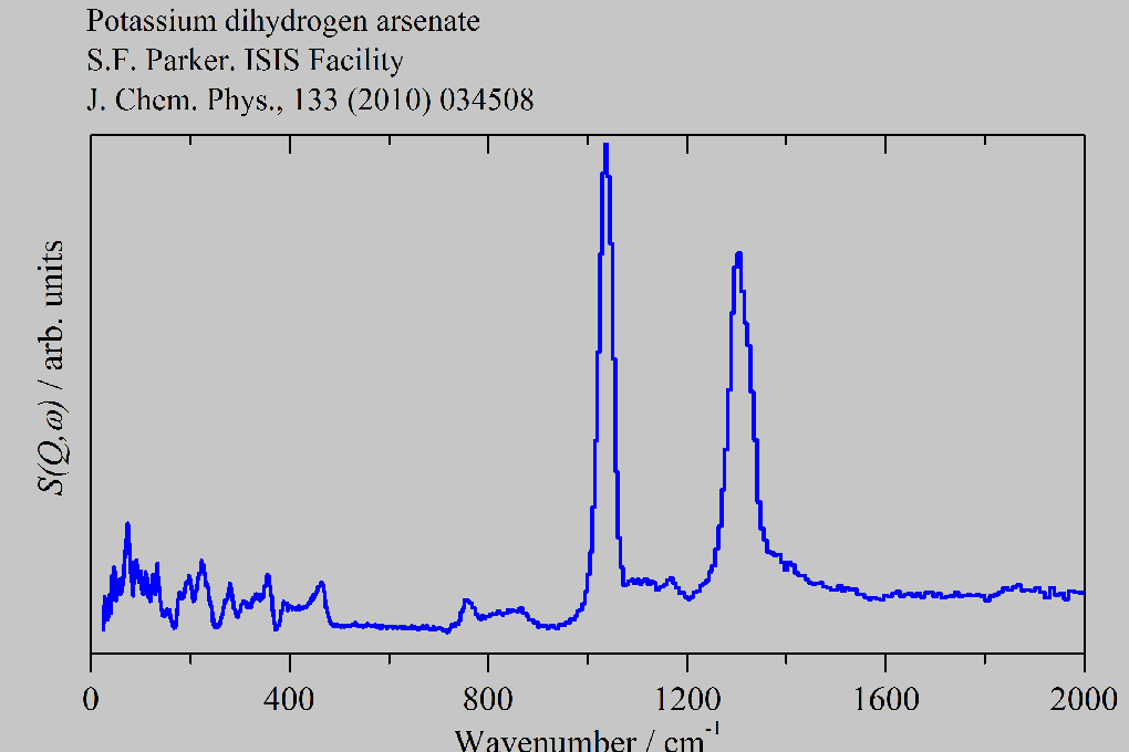 Inelastic Neutron Scattering spectrum of Potassium dihydrogen arsenate, KH₂AsO₄, measured on the TOSCA instrument.