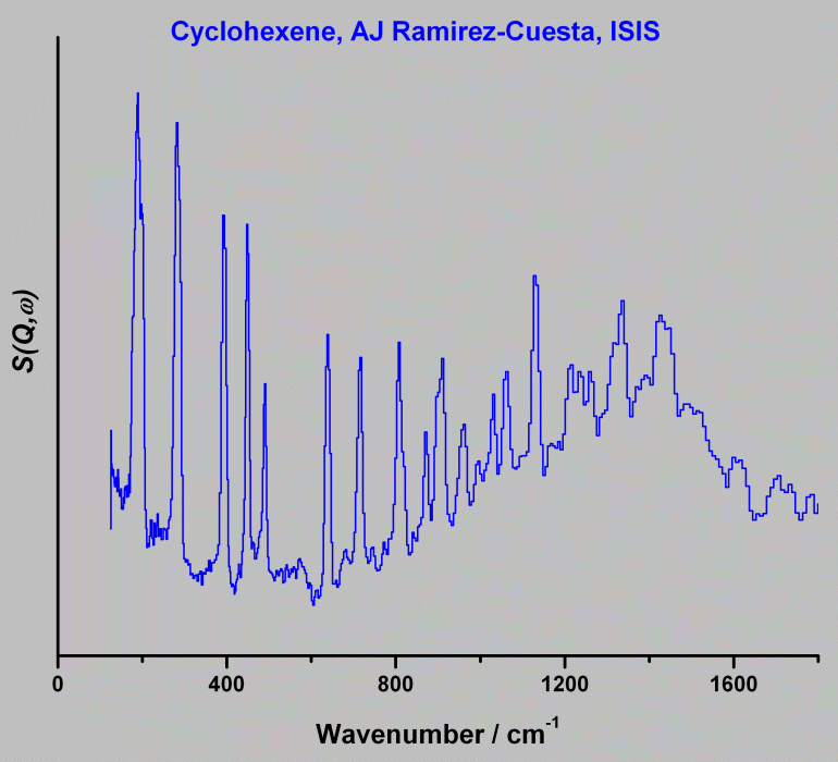 Inelastic Neutron Scattering spectrum of Cyclohexene, C₆H₁₀, measured on the TOSCA instrument.