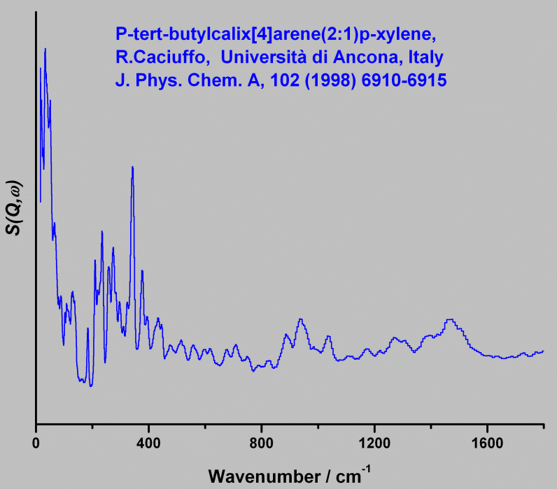 | dc.description.abstract | Inelastic Neutron Scattering spectrum of p-tert-Butylcalix[4]arene(2:1)p-xylene, C₄₄H₅₆O : C₈H₁₀, measured on the TFXA instrument. | |