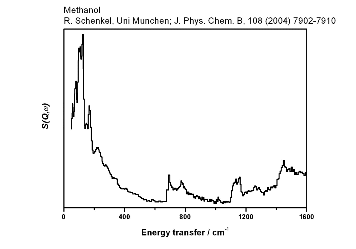 Inelastic Neutron Scattering spectrum of Methanol, CH₃OH, measured on the TOSCA instrument.